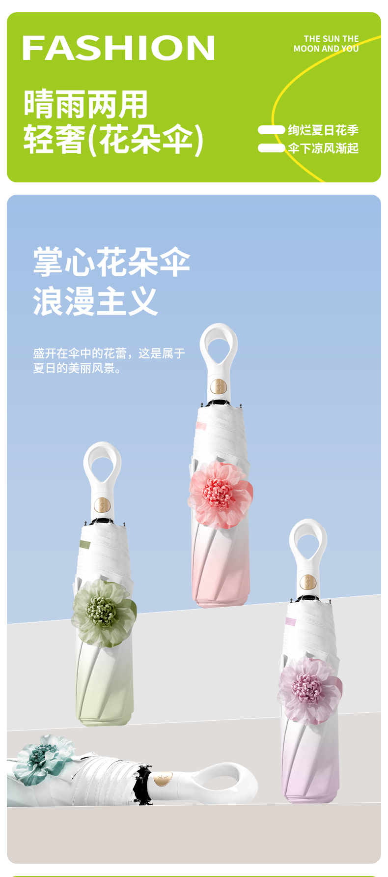 > 小花渐变自开收伞