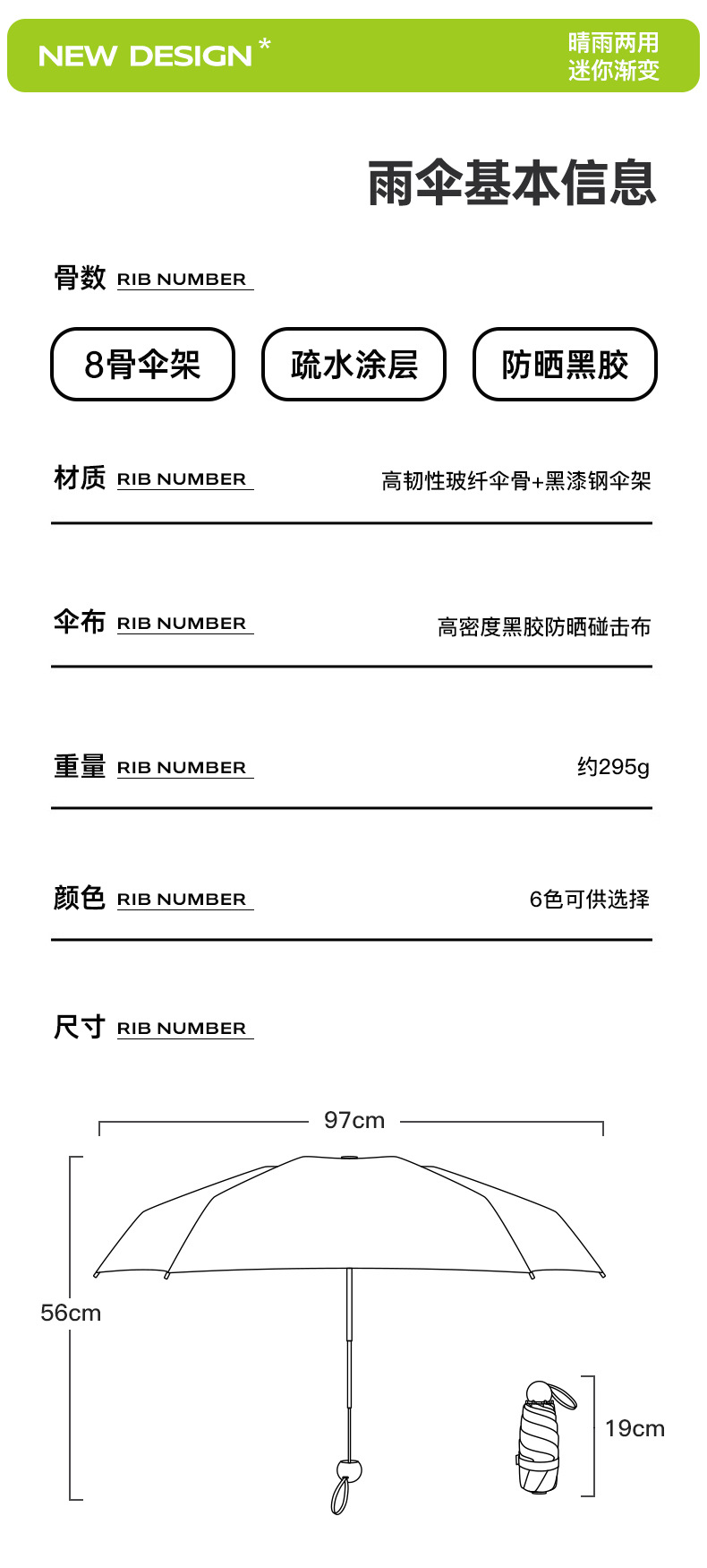 【布料】:190T 黑胶布防紫外线