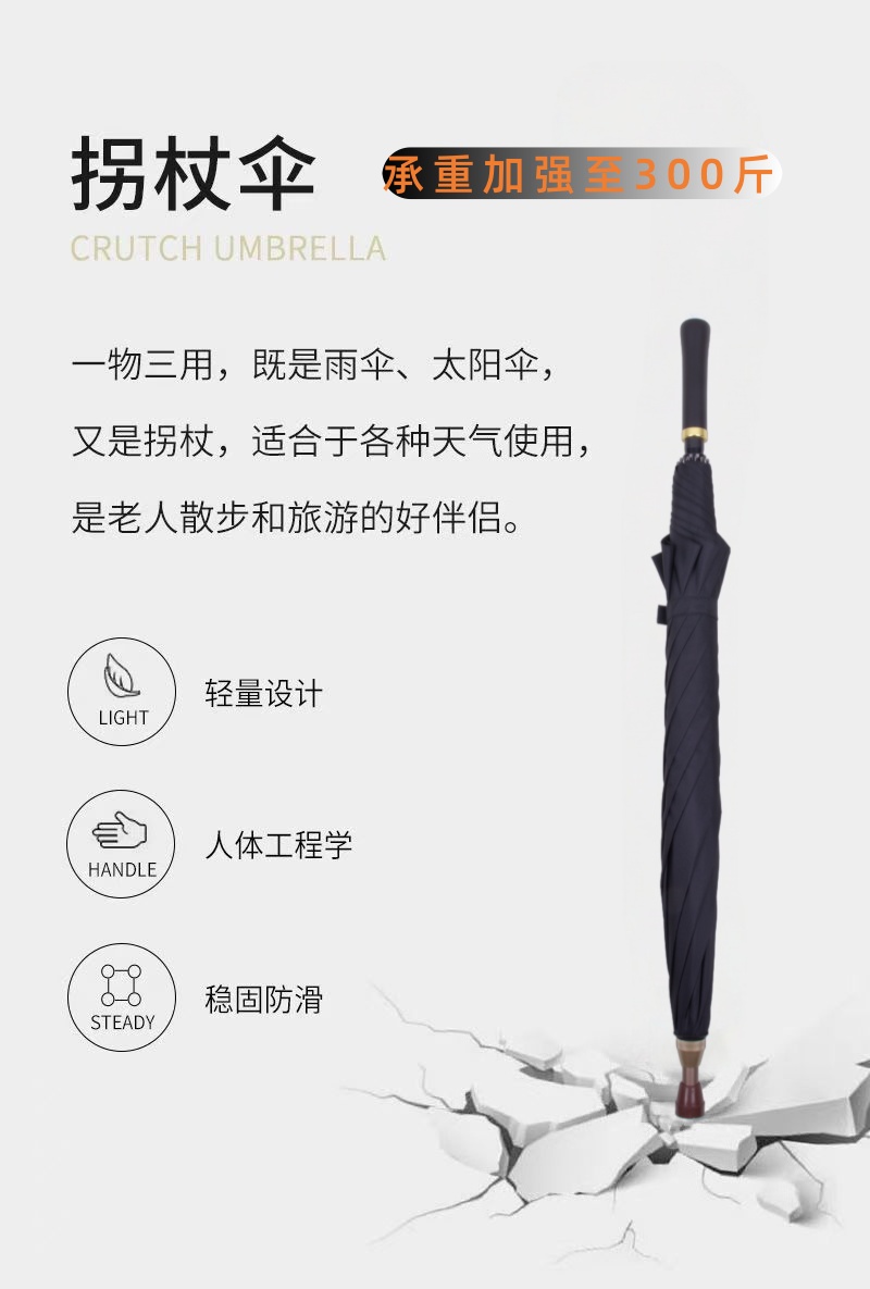 【骨架】:23寸x8kx16厘手开可分离拐杖伞